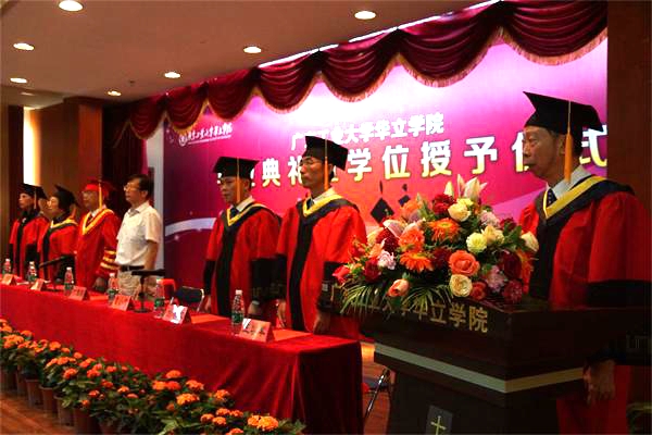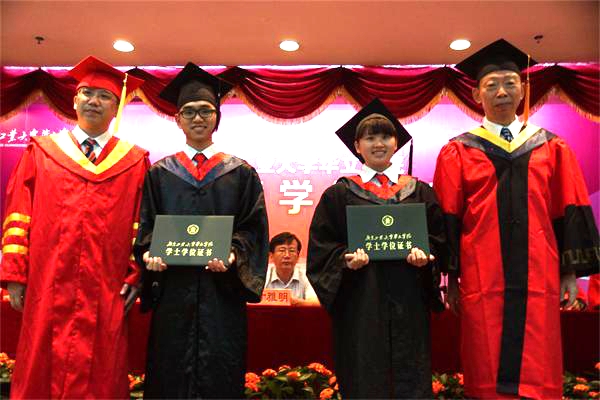 在欢快的乐曲声中,学院领导向毕业生颁发学位证书,并对毕业学子们表达诚挚的祝福。