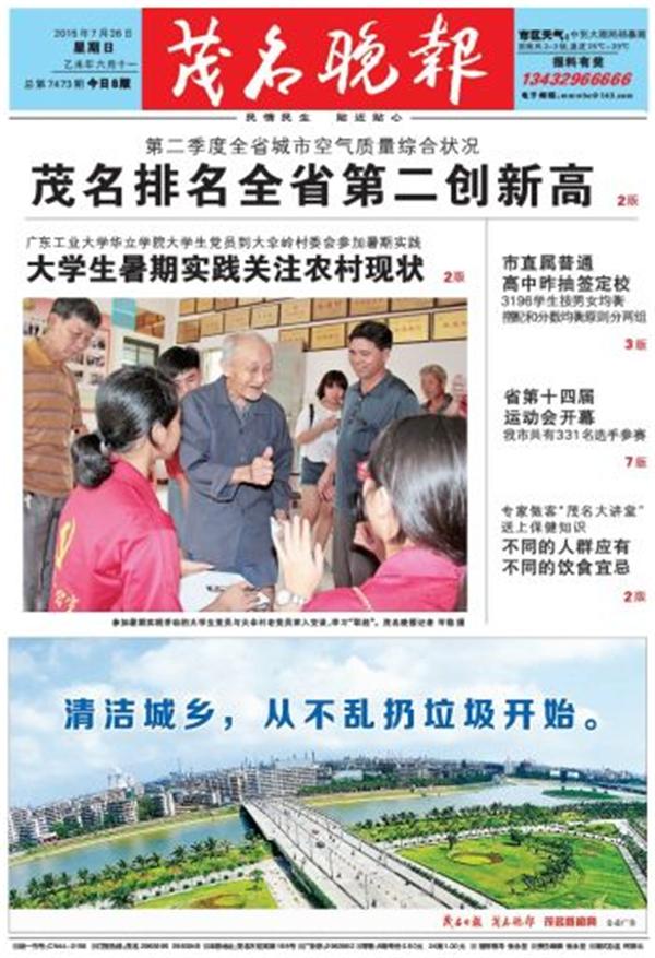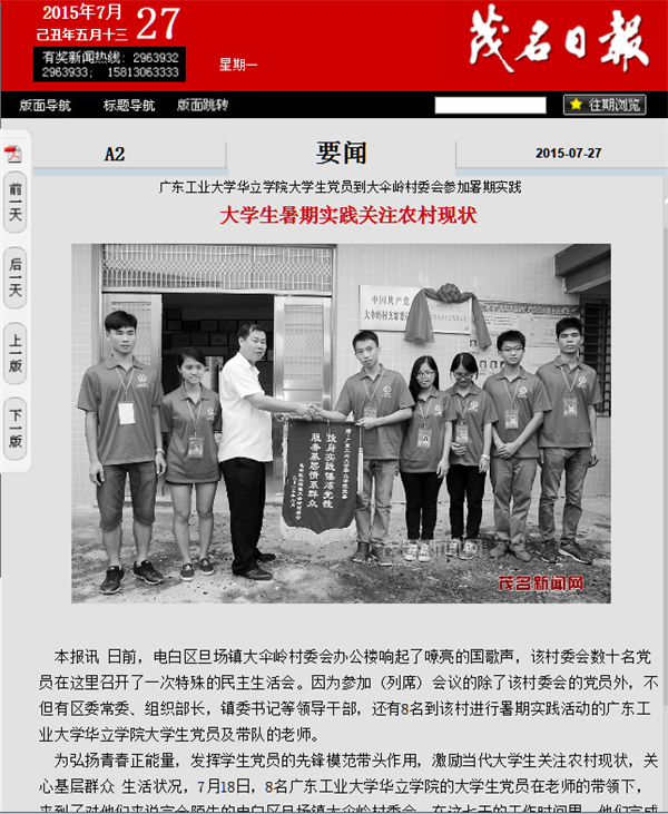 《茂名晚报》、《茂名日报》、茂名电视台等多家媒体报道我院大学生党员暑期社会实践活动