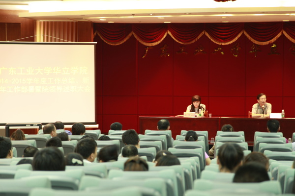 8月18日下午,我院在图书馆二号报告厅召开2014-2015学年度工作总结、新学年工作部署暨院领导述职大会。学院副董事长叶雅明,学院领导董小麟、郭颂平、刘怡军、柏育红、王学军,以及全院教职工出席了大会,会议由副院长柏育红主持。