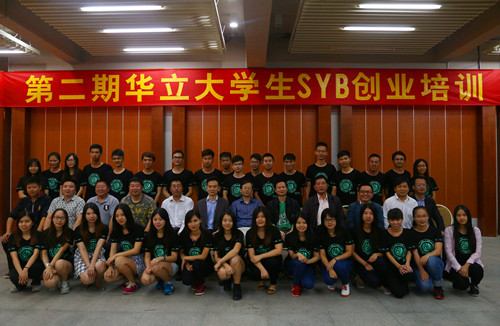 11月15日,我院第二期SYB创业培训结业典礼在三号报告厅隆重举行。广州华立投资有限公司总经理叶雅明、广东华南经济研究院执行院长陈国伟、增城区人社局培训科科长姚力刚、学院副院长高尧来、华立创新创业园总经理陈炽、总监刘志超、副总经理李庆全等出席了结业典礼。