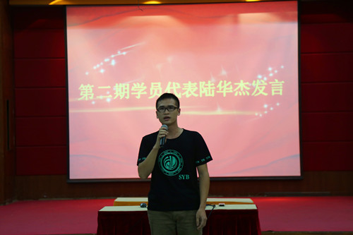 ![]() (图为优秀学院代表陆华杰作发表培训感想)