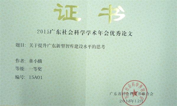 喜讯:我院执行院长董小麟的论文荣获“2015广东社会科学学术年会优秀论文”一等奖
