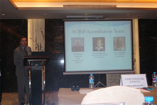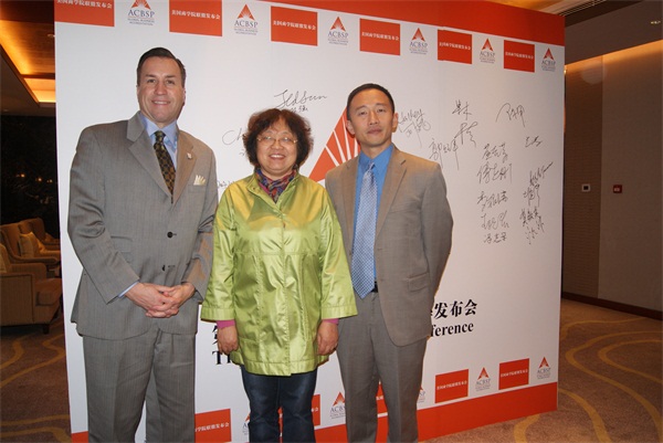 下午3:30发布会正式开始,来自全省近40所高校派出代表出席,ACBSP中国区主任Christy Xie主持发布会,向各位嘉宾表达了欢迎和感谢。接着,美国商学院联盟的CEO---Jeffrey Alderman博士发表演讲,详细介绍了ACBSP的情况及运作。董事会主席同时也是ACBSP第八区主席的Ted Sun博士介绍了美国商学院联盟的认证过程及成员利益。发布会还设定了现场提问环节,各高校代表踊跃发言,ACBSP均作出了专业回答。发布会在大家热烈的掌声中结束。