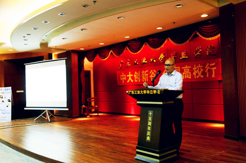 中创集团执行总裁韩海强就中大创新谷与华立学院开展“校园直通车”合作项目进行了讲解。希望通过相关项目将创业教育、人才培养与项目孵化相结合,在“学生、学校、用人单位”三方之间实现有机结合。