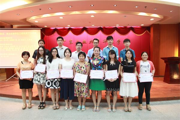 学院郭颂平、温孝胜、王学军副院长先后宣读了学院对2015-2016学年度 “教学名师”、“最受欢迎教师”、 “优秀辅导员、班主任和学生工作先进个人”、“校外就业先进集体和先进个人”等进行表彰的决定,并为获奖的集体和个人进行颁奖。