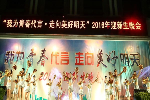晚会在院艺术团的“闪亮青春健美操”中拉开序幕。学院党委书记刘怡军在致辞中表示,青春不仅象征同学们的活力,也象征着因为同学们的到来,让学院更有朝气;大学是同学们的新开端,希望同学们能在师资优秀、文化丰富的校园里学习,把握青春,快乐成长,走向更加美好的未来。