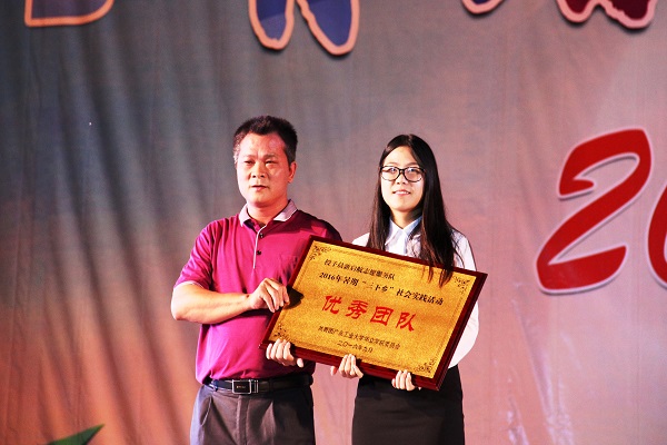 接着,晚会进入2016年暑期三下乡社会实践活动的表彰环节。学院领导分别为三下乡的先进集体和个人颁发了三下乡社会实践活动优秀团队奖、先进个人奖、优秀调研报告奖。