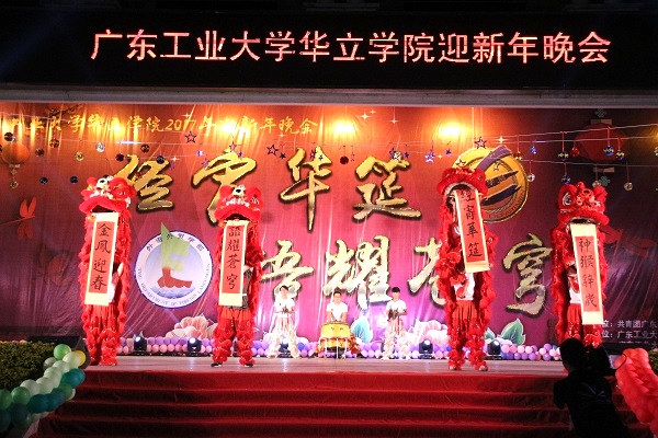 接着,丰富多彩的演出节目依次登场,华立职院的《虎鹤双行和舞狮表演》、外经贸舞蹈队的《新的信仰》、华立十大歌手共同献唱的《迎新春》、外经贸戏剧队的诙谐小品《疯狂旅游团》等节目使现场气氛欢快而热烈,而特邀嘉宾AGEBOYS的另类表演则将晚会气氛推向高潮。