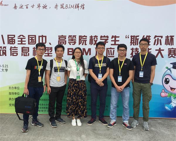 我院选派的两支参赛队伍远赴成都,前往四川大学参加BIM总决赛,团队成员克服了饮食不习惯、水土不服等困难,经过激烈角逐,最终我院李胜增、钟润超、杨宗憧、陈志东、陈朝威等同学组成的团队获得全能二等奖,包括绿色建筑专项一等奖1项,工程设计专项二等奖1项,工程管理专项三等奖1项,工程造价专项三等奖1项。