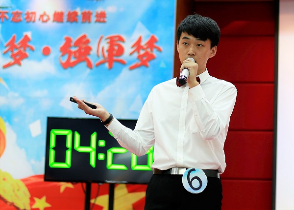 在决赛场上,各位选手使出浑身解数。其中,3号选手张静琪以“欲圆中国梦,先圆强军梦”为主题,阐明中华民族要有强大的军队做后盾,才能实现伟大的中国梦;5号选手林伟伦用中国90年来的辉煌成就表明,中国正向着强军梦和中国梦稳步前行;6号选手梁旭表示,作为一名90后的大学生,要以满腔热血为中华民族伟大复兴的中国梦贡献出自己的一份力量。