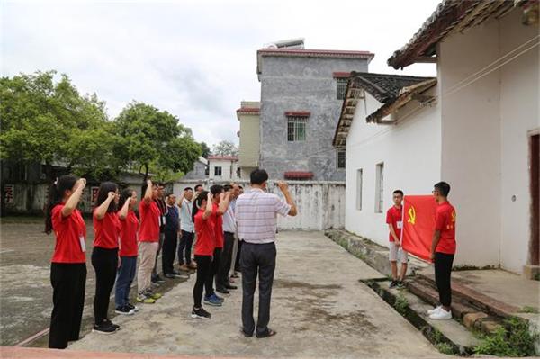 随后,全体党员到东江纵队北江支部旧址参观学习,在村党总支书记赖德红的领誓下,党员们面向党旗,重温入党誓词。接着,实践队队员前往该村困难老党员家中进行了走访慰问等相关实践活动。
