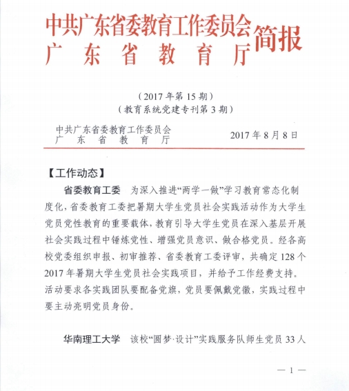 本期专刊,报道了我院以及华南理工大学、华南农业大学、华南师范大学等6所高校大学生党员暑期社会实践活动概况。