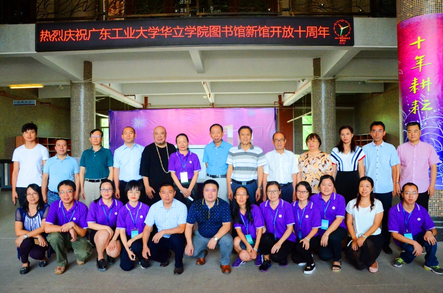 9月20日上午,广东工业大学华立学院图书馆新馆开放十周年庆典活动在图书馆隆重举行。广州华立投资有限公司董事长张智峰、总经理叶雅明、副总经理张智坚,北京世纪超星信息技术发展有限责任公司副总经理尚景伟,华立园兄弟院校的领导,学院领导董小麟、郭颂平、柏育红、王学军,各部门负责人及图书馆全体干部职工出席了庆典活动启动仪式。活动由图书馆馆长赖卫桥主持。