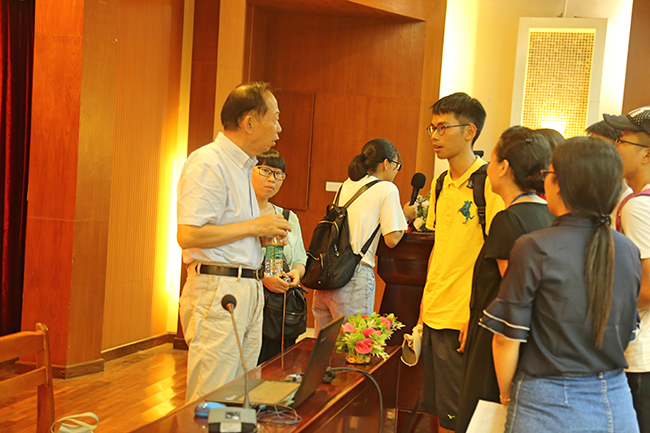 会议结束了,许多读者久久不肯离开,一起涌向主席台把董院长团团围住问这问那,如我很想读书但不知道怎么读?我学机械专业,我应该读什么书……院长都耐心回答,并鼓励他们珍惜在华立的美好时光,好好学习,将来成为有用之才。