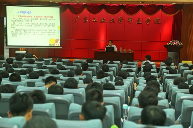 董院长以人生需要阅读,在读中耕、在耕中读,阅读——耕耘——追梦三个方面阐述读什么、怎么读、阅读影响你成为什么样的人。他提出:善读者,人生更精彩,如同获得质的再生,或有量的延伸。并以自己亲身经历和成长历程与大家分享读人、读事、读社会,在人生中阅读,在阅读中升华。他谈到读大学是在书的海洋中畅游的最佳时机,是在知识的田野里收获丰硕果实的最好季节。阅读为他今后学术修养和发展后劲提供了支撑,成就了他从知青到学者的人生蜕变,成为被社会认可和对社会发展有所贡献的人。