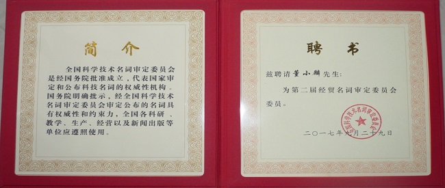 我院执行院长董小麟教授再次当选国家经贸名词审定委员会委员