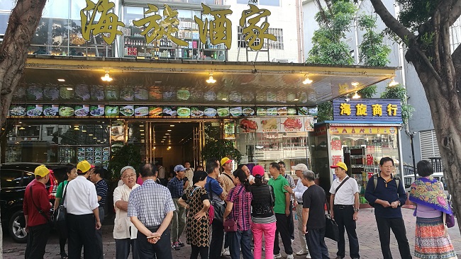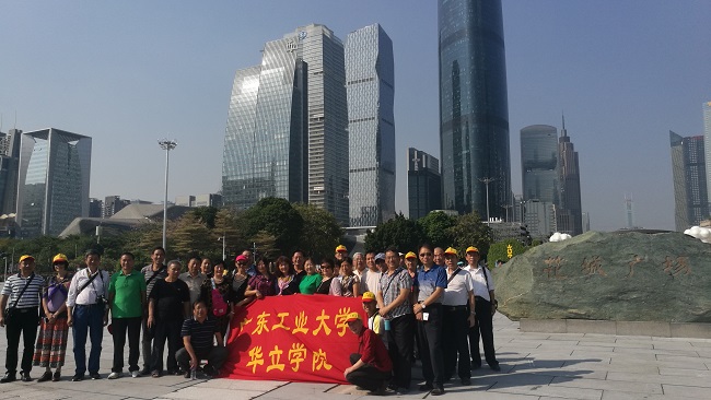 中餐后大家继续前往游览【花城广场、海心沙亚运公园】。花城广场于亚运会前投入使用,是广州城市新中轴线上的又一颗明珠。这里建有人造景观湖区,大型喷泉、灯光广场,冷雾降温系统,并种植600多棵大树。在花城广场的北端,有5个花岛,其中3个为樱花岛,2个为桃花岛,配上柳树,以植物的多种类衬托花城美誉,营造桃红柳绿的意境。每一位退休教师都被这些美景所吸引,深深陶醉。他们在石板路间,互道生活琐碎,在迤逦的风光和浓浓的秋意中感受着集体的温暖。