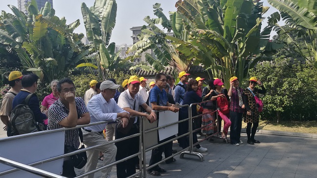上午8点,老教师们在学院统一乘车,一路上,大家欢声笑语,话旧叙新,倍感亲切。第一站我们前往参观广东建筑艺术明珠——【陈家祠】。陈家祠又称陈氏书院,清光绪十六年(1890年)始建,光绪二十年(1894)落成,它是当时广东省72县陈姓的族祠和书院。陈氏书院集岭南建筑工艺装饰之大成,几乎全部堂、院、廊、厅、门、窗、栏、壁、屋脊、架梁都展示了岭南建筑的“三雕三塑”即石雕、木雕、砖雕、陶塑、泥塑、灰塑以及铁铸工艺的高超技艺。