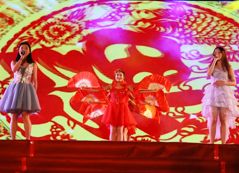 团拜会的节目精彩纷呈,既有激情澎湃的歌舞,也有神奇变幻的魔术和高贵典雅的管乐;既有学生的表演,也有教师的献艺;其间还穿插了抽奖活动,大家都沉浸在温馨的欢乐气氛中。最后,晚会在优雅的管乐合奏中落下帷幕。