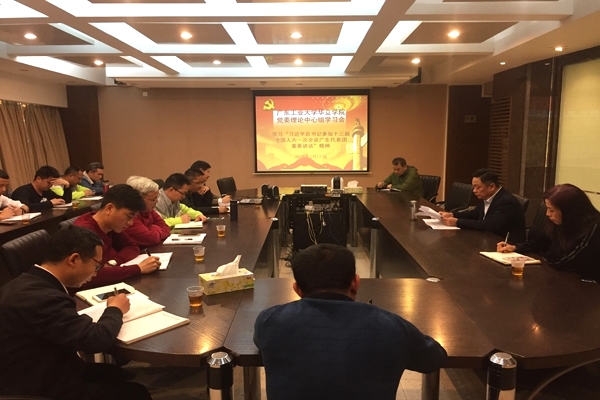 学院理论中心组成员集中收看了习近平总书记参加第十三届全国人民代表大会第一次会议广东省代表团审议视频,认真学习贯彻习总书记的重要讲话精神。视频学习后李琼生书记传达中共广东省委关于认真学习宣传贯彻习近平总书记在参加十三届全国人大一次会议广东代表团审议时的重要讲话精神的通知。