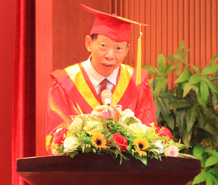 在庄严肃穆的国歌声中,毕业典礼暨学位授予仪式正式开始。章云院长在典礼上发表了热情洋溢的讲话。他首先代表学院向圆满完成学业、即将奔赴工作岗位的毕业生表示热烈的祝贺,向悉心指导和培养华立学子的全体教师致以崇高的敬意,向长期以来关心支持学院建设和发展,关爱同学们成人成才的各级领导、广大校友、学生家长及社会各界人士表示最诚挚的感谢。他寄语同学们在为梦想努力时要保持家国情怀,铭记自身责任,脚踏实地奋斗,希望同学们的青春永在!奋斗精神永在!