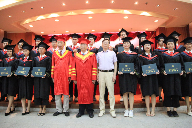 学院党委李琼生书记宣读表彰优秀毕业生的决定;学院副院长郭颂平教授宣读授予学位的决定。章云院长以及董小麟教授为毕业生授予学位、扶正流苏,并同毕业生逐一合影留念。在律动的节拍中,2018届毕业生带着母校的祝福和期望,踏上了人生新的征程!