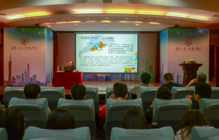 3月12日下午,我院执行院长董小麟教授以《粤港澳大湾区建设》为主题的思政第一课在图书馆2号报告厅正式开讲。