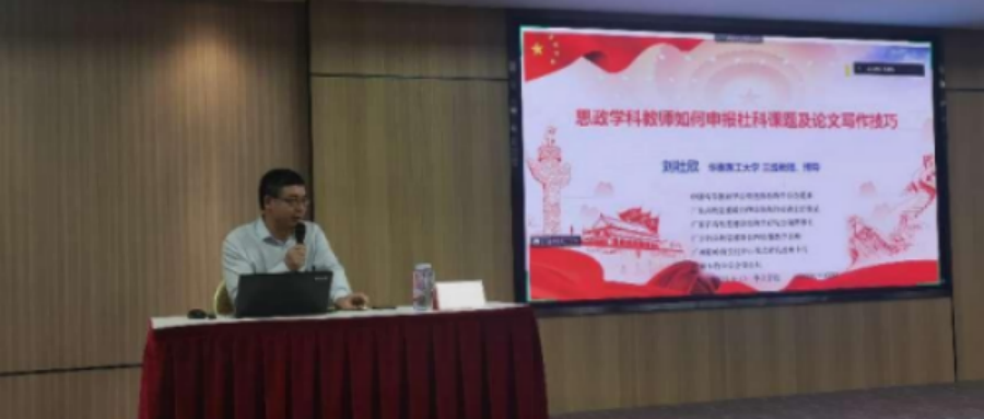 最后,刘苍劲教授在点评总结中指出,进行科研课题申报、撰写学术论文是思政课教师开展科研工作的基本形式,也是思政课教师必须不断提升的科研能力。同时,科研课题、学术论文的写作对于提升思政课教师专业素养、推动思想政治教育学科建设具有积极作用。
