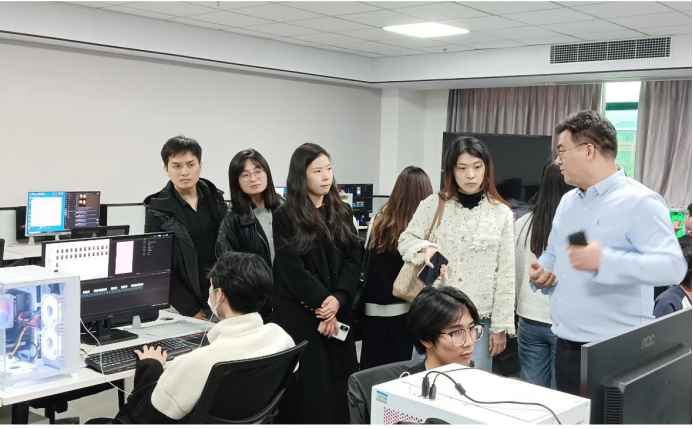 教师们认真听取公司介绍和市场的行情分析,了解公司的运营模式。随后根据专业性质与岗位需求,安排教师在不同的岗位进行实践,教师们直观了解直播的工作流程、管理机制,深入学习短视频制作、剪辑及如何进行商业运作等等。