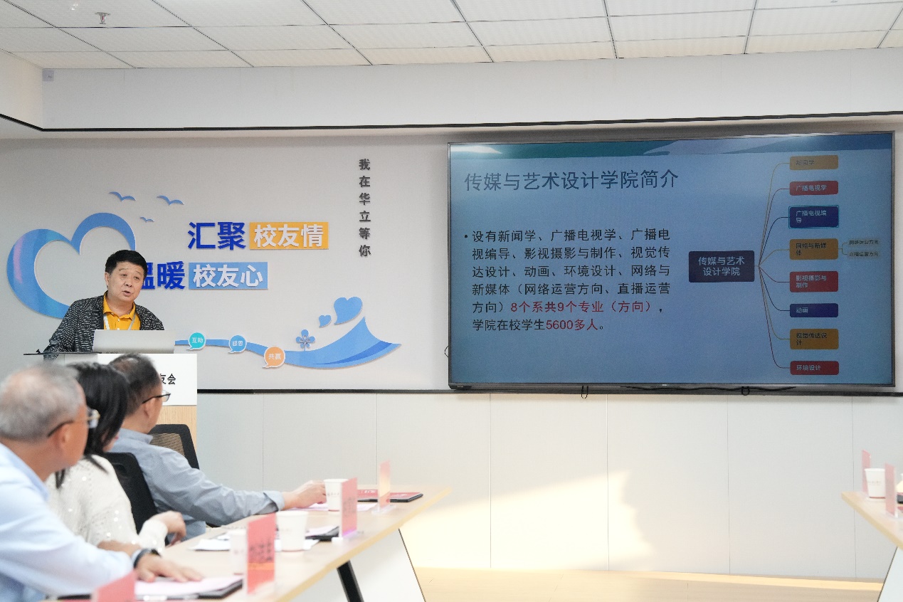 传艺学院院长戴剑平通过PPT的形式,详细介绍了传艺学院的师资力量、教学成果、研究方向以及未来发展规划,展现了传艺学院在新影视专业定位、教育领域的实力和潜力。