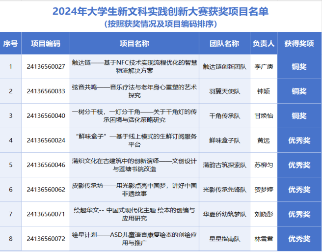 首届全国大学生新文科实践创新大赛成绩的取得,体现了我校在新文科建设方面的积极探索,也展示了我校学子的实践能力和创新精神。学校将以这次大赛为契机,聚焦国家发展战略和经济社会发展需求,不断推动“四新”专业建设,着力提升人才培养质量,为社会培养更多具备跨学科视野和创新能力的时代新人。