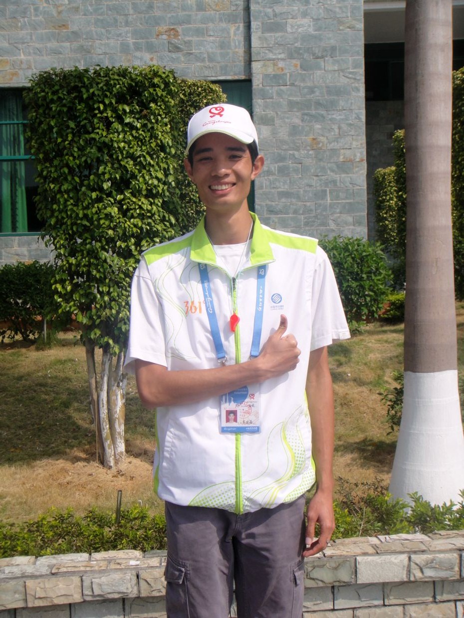 陈观海,是一名广东工业大学华立学院的学生,亚运会增城体育馆增江大道—教育路路口城市文明岗位的小队长,老师眼中真诚实在的小伙、同学眼中热心的大哥、队员眼中最信得过的队长。他带领团队以优质的服务完美地完成了各项志愿任务。在助人过程中,他用心践行着“我志愿、我快乐、我成长”。