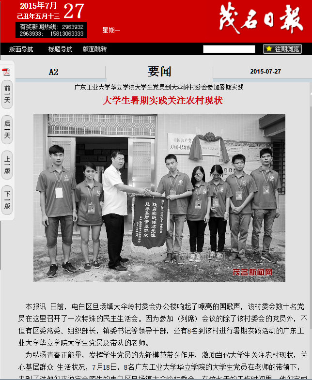 【茂名日报】:广工华立学院学生党员暑期社会实践活动
