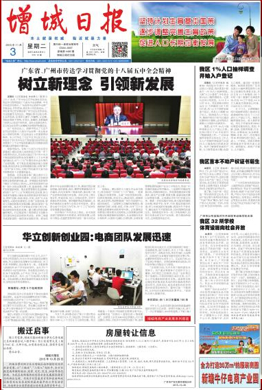 【增城日报】:“华立创新创业园:电商团队发展迅速”