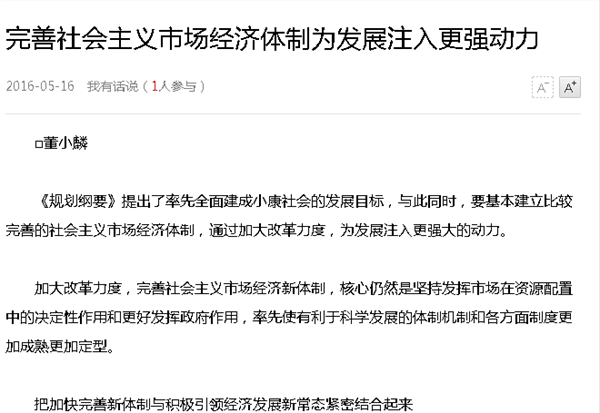 【南方日报】特约刊载我院执行院长董小麟的文章“完善社会主义市场经济体制 为发展注入更强动力” 作者:学院办公室 发布时间:2016-05-16 00:00:00 浏览次数:次 【字体:小 大】 分享到: 【打印正文】