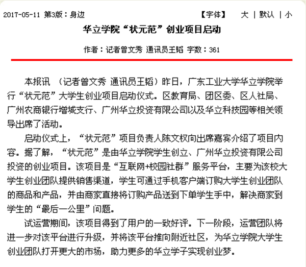 【增城日报】:华立学院“状元范”项目启动