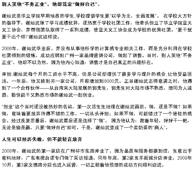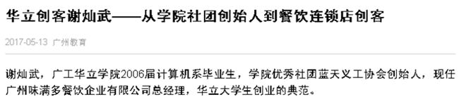 【广州教育】:华立创客谢灿武从学院社团创始人到餐饮连锁店创客