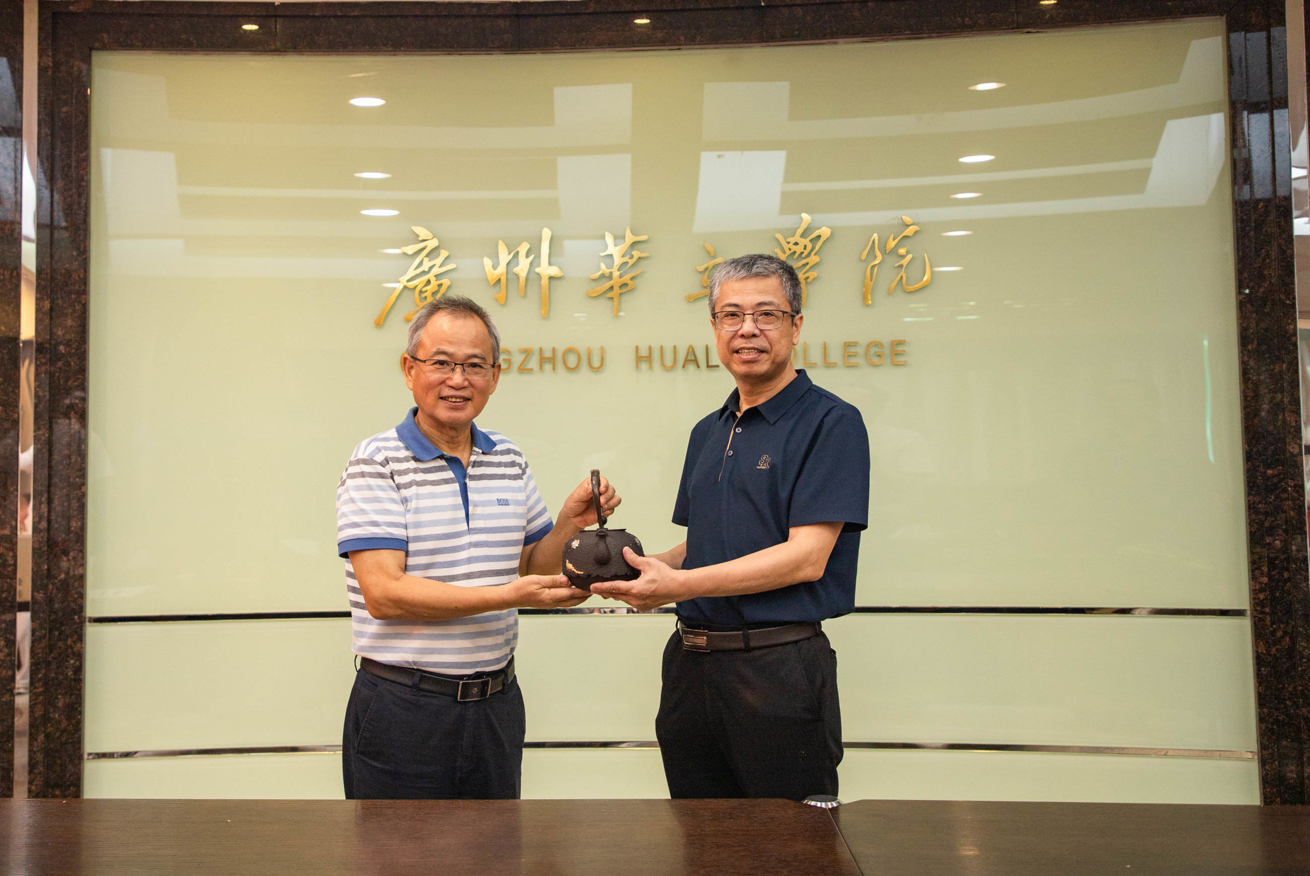 互动交流结束,暨南大学深圳校区和深圳校友会分别向华立学院赠送纪念品,并合影留念。
