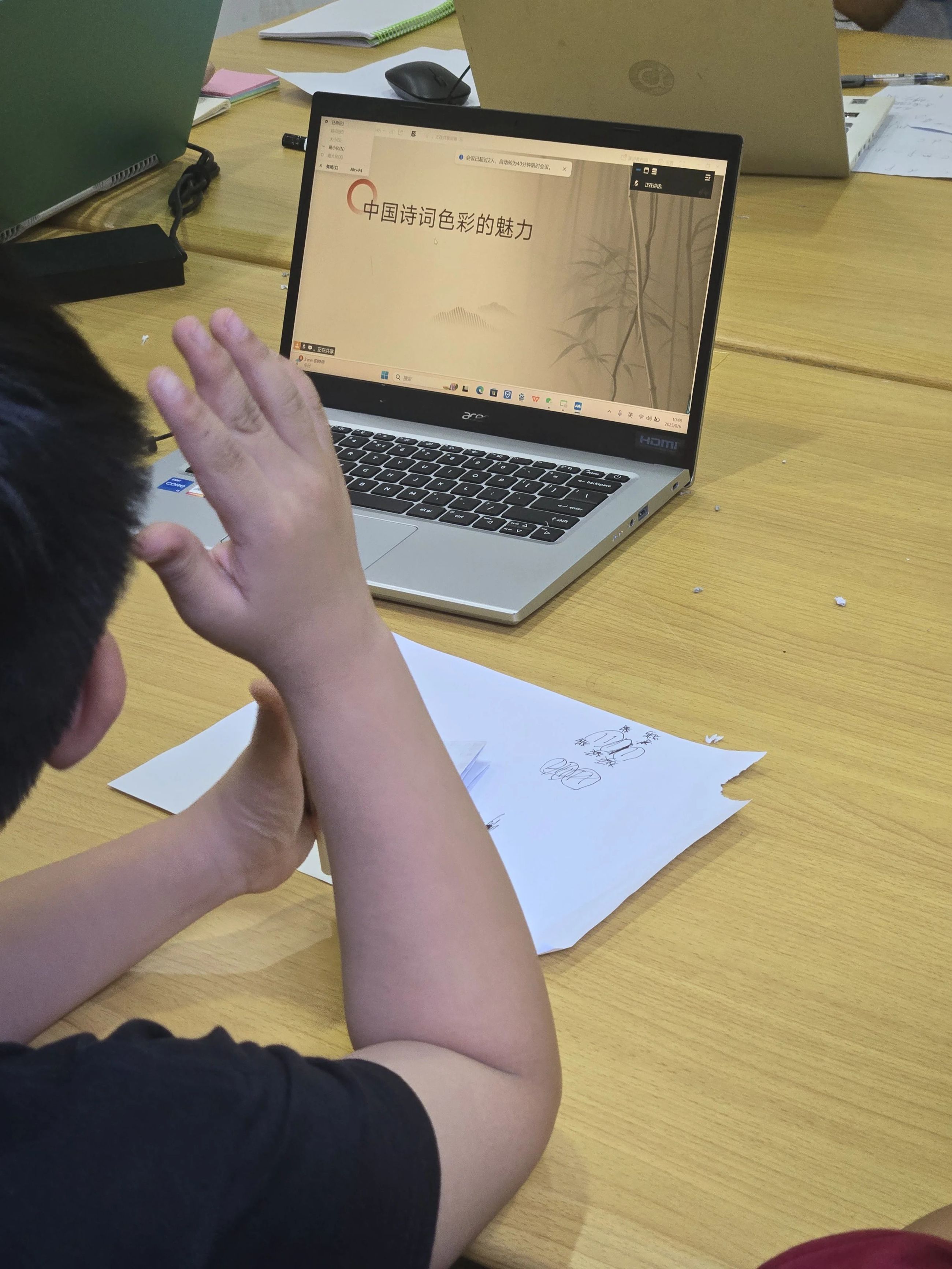 “同色传递”游戏点燃课堂。孩子们寻觅色彩对应物,在传递欢笑间,诗词之美悄然入心。