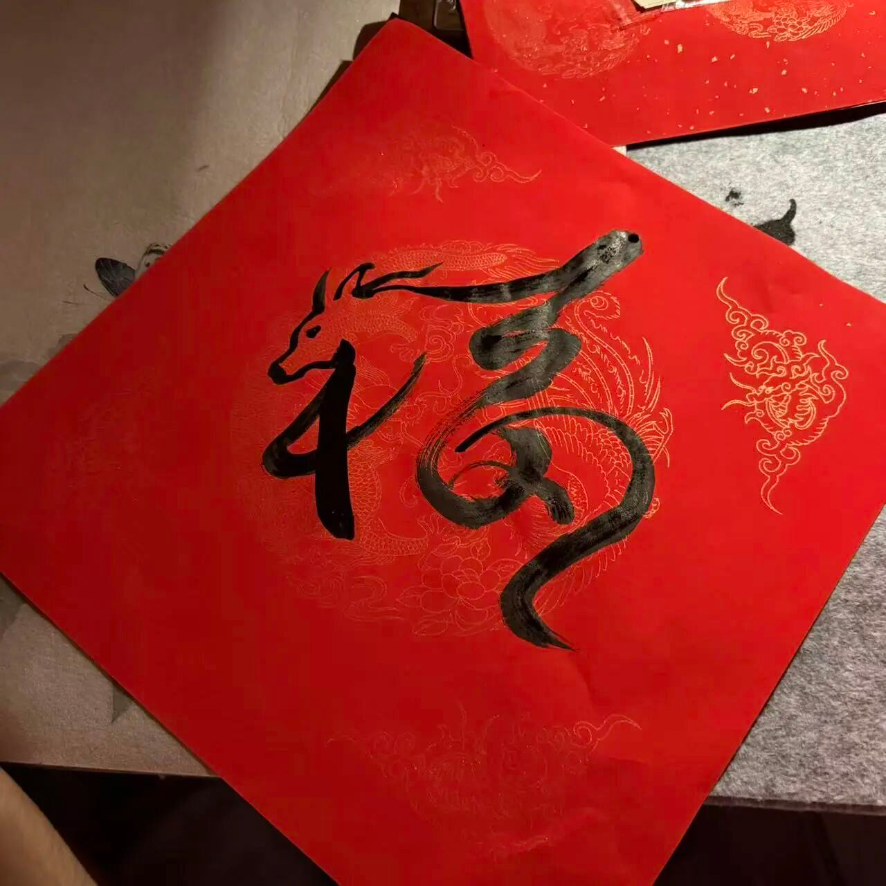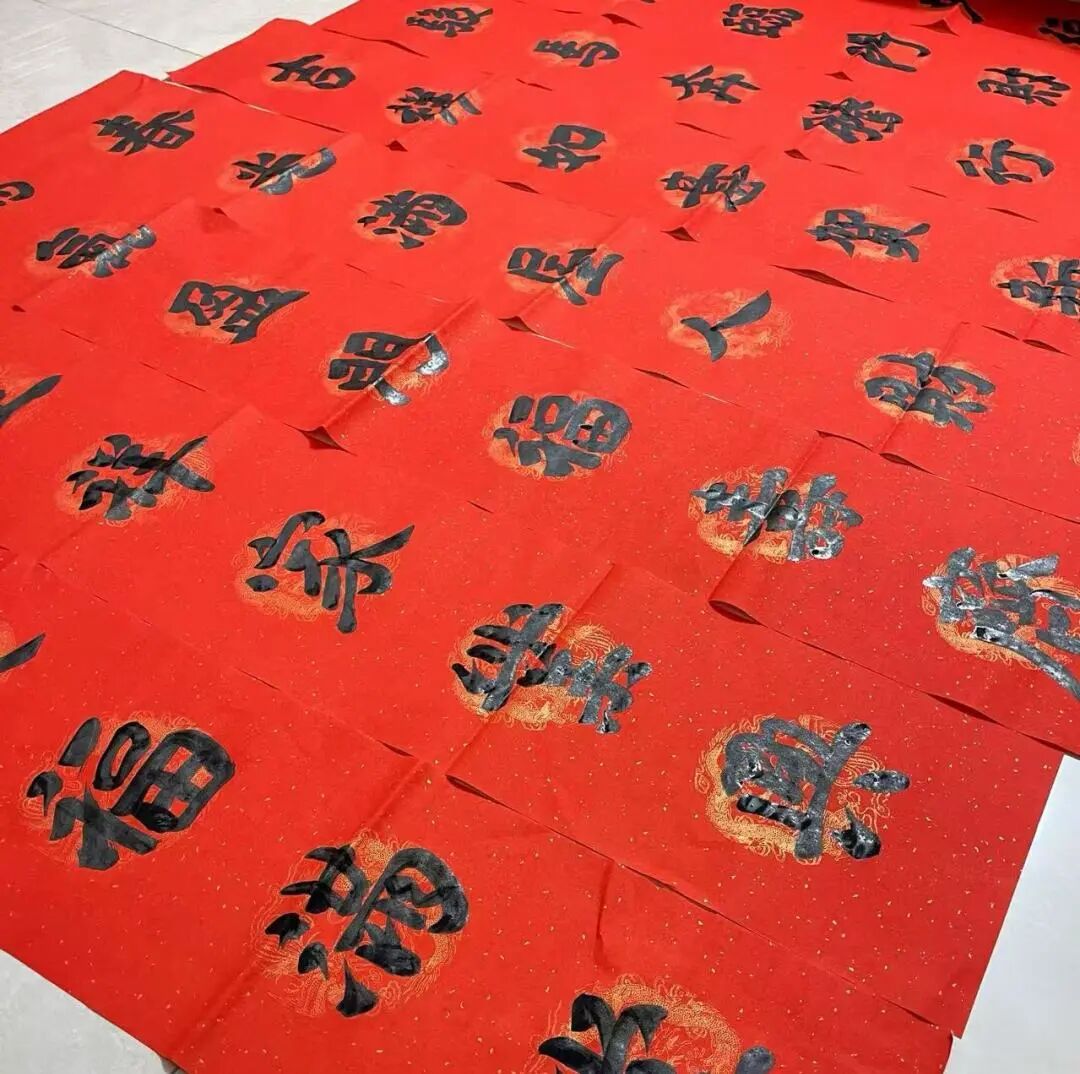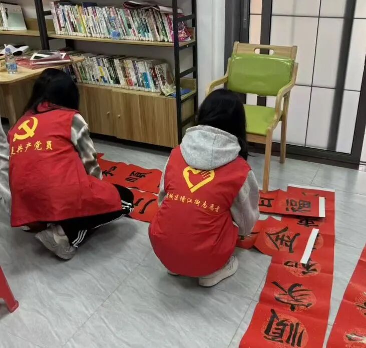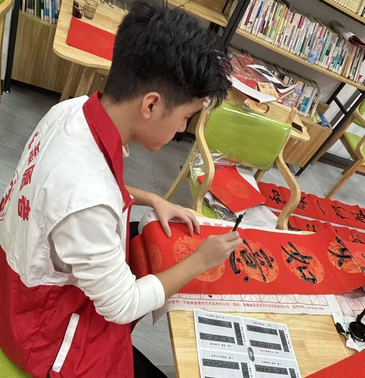 榄雕文化宣讲活动之后,我们加入了象山社区活动中心举办的写春联活动,实践团的“书法小能手”挥毫泼墨,笔走龙蛇。一幅幅寓意吉祥、满载祝福的春联和“福”字在红纸上跃然而出。大家帮忙压纸、晾晒,气氛温馨热烈。