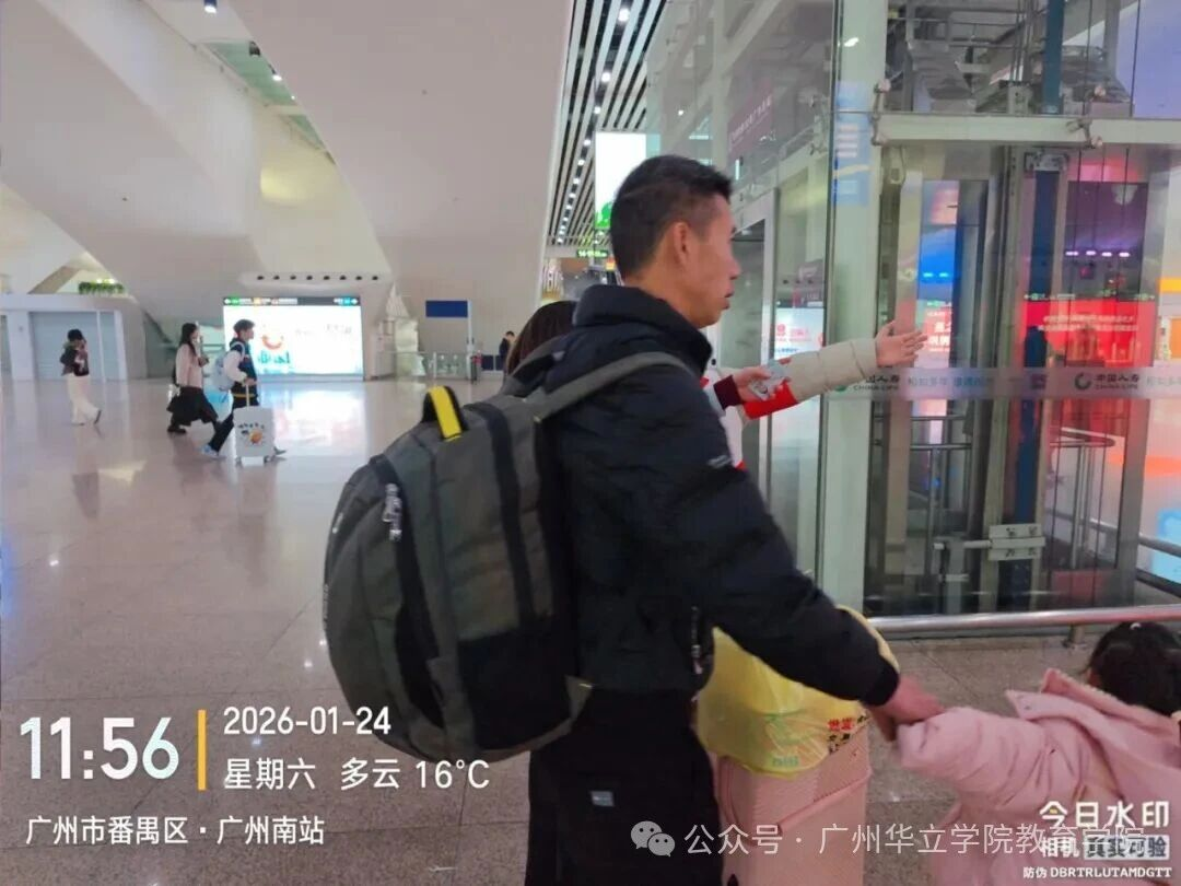 广州华立学院教育学院银龄乐队于2026年1月21日-24日拖着行李前往广州南站——但不是去坐车,是去当志愿者:红马甲、红袖章,还有一颗想"做点实事"的心。