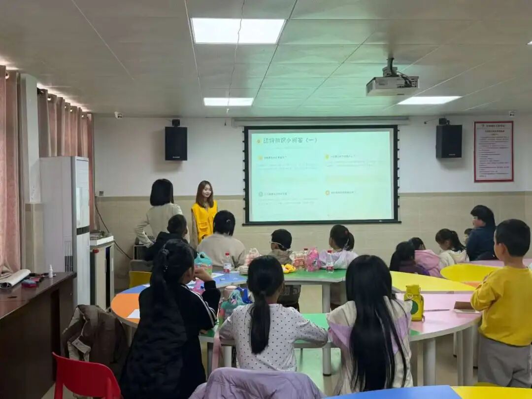 志愿者围绕“认识动物—探索习性—守护生命”的逻辑展开,详细介绍哺乳动物、鸟类等六大类群的典型属性与代表动物,并通过趣味知识小问答巩固学习。帮助儿童系统构建动物知识体系,极大激发儿童对大自然的好奇心与探索欲,并树立“爱护动物、守护自然”的责任意识,助力小朋友成长为兼具科学素养与社会责任感的小公民。