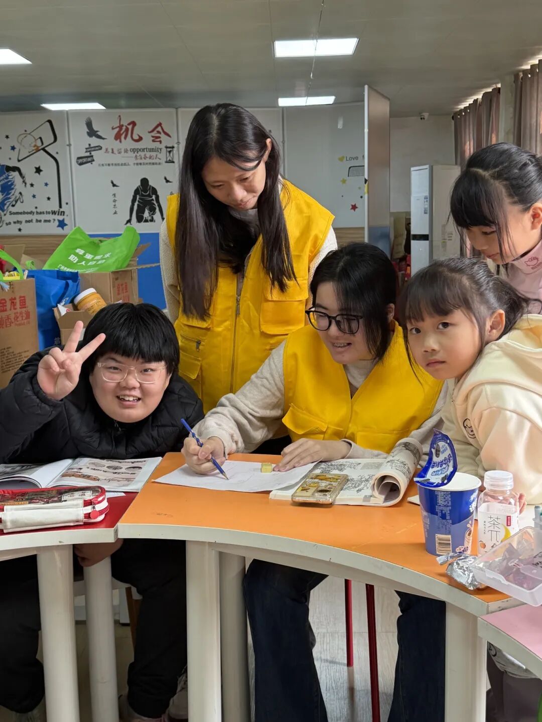 在学业辅导环节,志愿者们秉持“授人以渔”的理念,不仅耐心解答孩子们作业中的疑难问题,更注重学习方法的传授与思维能力的培养。通过“举一反三”的例题拓展、知识点串联梳理等方式,帮助孩子们构建系统的知识框架。