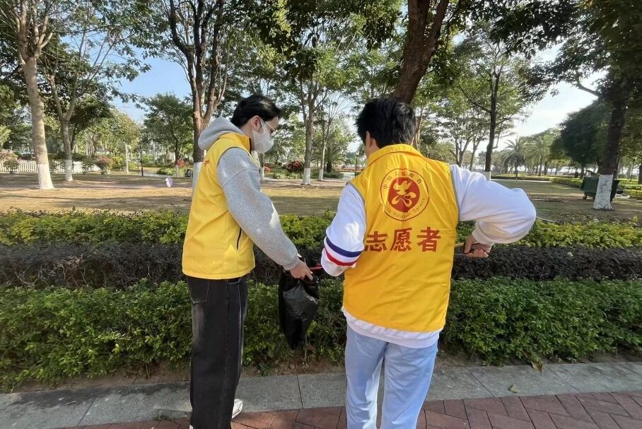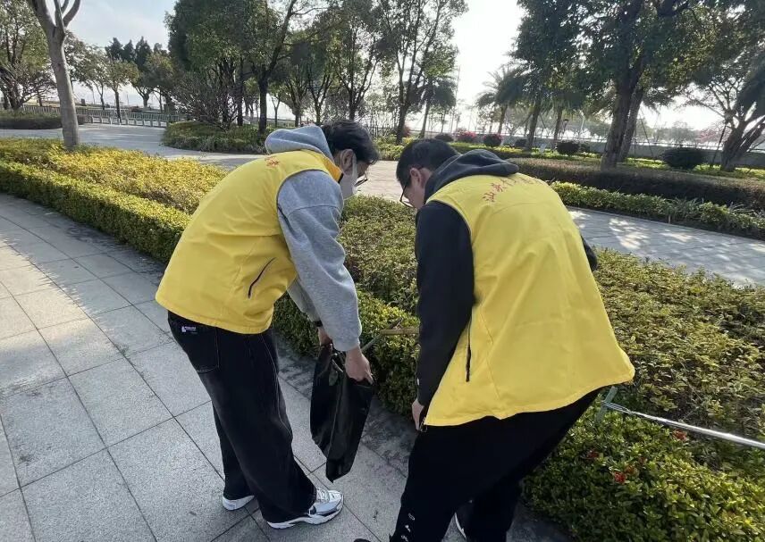 临近春节,广场人流密集,环境卫生压力增大,纸屑、饮料瓶、塑料袋等废弃物散落各处。活动中,陈泽宇与其他志愿者分工协作,沿主干道和绿化带逐一清理。部分垃圾被踩入泥土或藏于灌木丛,需耐心细致地清除。多次弯腰虽带来疲劳,但看到环境恢复整洁,内心亦感到踏实。清理过程中,市民投来赞许的目光,亦有儿童在家长引导下主动将垃圾投入桶中。陈泽宇深刻体会到,文明见于具体行动。一次次弯腰拾起,是对城市环境的守护、公共空间的尊重,也是青年责任的践行。