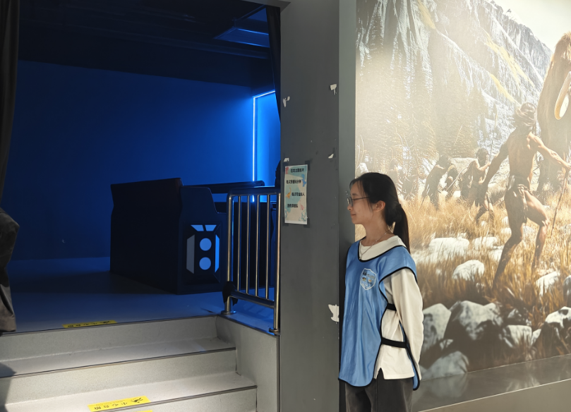 2026年2月4日,23信管1班陈思园在广州市海珠区金山地质博物馆参与科普志愿服务,负责白垩纪恐龙知识讲解及“星际探险5D”动画引导。
