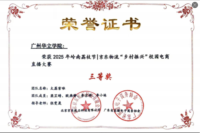 喜报!2025岭南荔枝节京东物流直播赛落幕,我校三支队伍均获奖