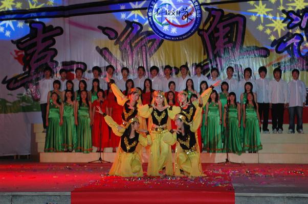 4月22日晚在科技文化艺术开幕式后,第六届科技文化艺术节大型文艺晚会成功演出。晚会在学院大学生管乐团演奏的《铃儿叮当响》和《开鹅湖选曲》中拉开序幕,接着各系的旗手踩着滑轮挥舞着彩旗向观众场走来,五个奥运福娃紧随其后将鲜艳的五星红旗及奥运五环旗发给现场的观。表达了对奥运的祝福和期盼。结下来按照晚会的节目安排,各个节目依次闪亮登场。晚会最后在歌舞《难忘今宵》中圆满结束。整台晚会共有13个节目,主要以歌舞类节目为主。晚会现场气氛异常热烈,晚会的整个组织与节目都得到了同学和领导、老师的好评。