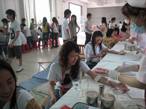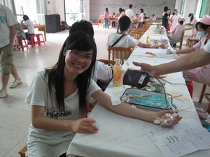 “涓涓热血,铺生命之路”我院师生积极参与无偿献血活动 作者:校团委 发布时间:2008-05-08 00:00:00 浏览次数: 次 【字体:小 大】 2008年5月7日,由学院团委组织,蓝天义工协会协助的 “涓涓热血,铺生命之路”自愿无偿献血活动在我院综合楼阅览室进行。 学生处熊萍处长到现场指导工作,王学军副处长对献血的同学亲切问候。学院团委邱四锋老师、姚轲邺老师均参加献血活动。本次共有250余名师生参加了无偿献血,增城电视台进行现场采访并报道。 分享到: 【打印正文】