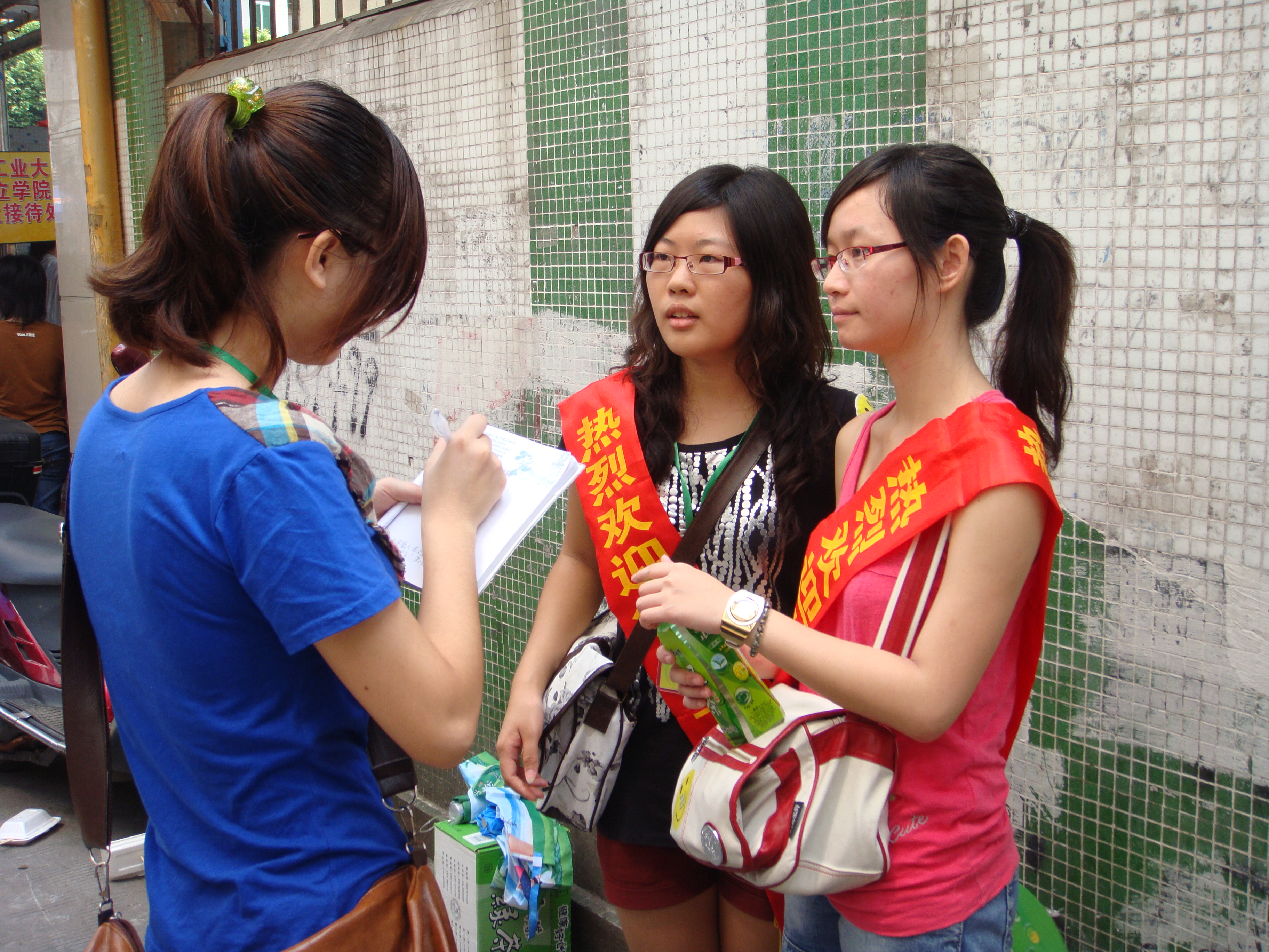 工:最深刻的是现在的新生太幸福了,家长基本都会接送,有些时候,甚至是三代一起来,就是爷爷奶奶,爸爸妈妈,姐姐陪他一起来!另外就是工作环境真的挺差,加上天气炎热,有些工作人员都会觉得有些晕。
