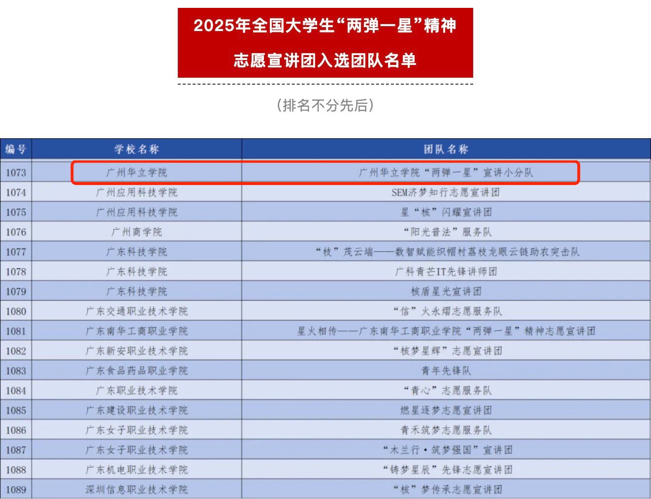 喜报!广州华立学院“两弹一星”宣讲小分队成功入选2025年全国大学生“两弹一星”精神志愿宣讲团